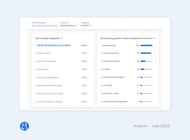 заработал инструмент, с помощью которого можно понять, на какие товарные категории увеличивается спрос (Rising Retail Categories Tool). Он отображает быстрорастущие продуктовые категории в поиске Google, местоположения, где наблюдается рост, а также связанные с ними запросы. Инструмент бесплатный и доступен всем пользователям. Пока он отображает тренды для трех стран: США, Великобритания и Австралия.