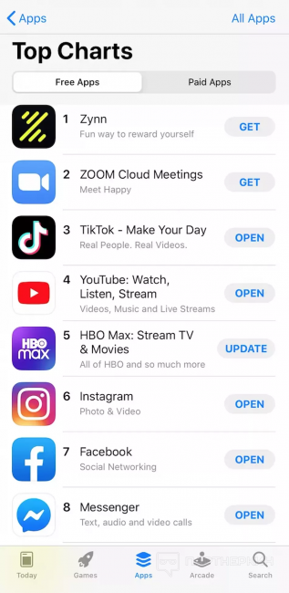 Приложение Zynn за считанные дни возглавило топ App Store, оставив позади себя таких гигантов, как Zoom и Tiktok. Успехи Zynn в Google Play намного скромнее, но все равно выдающиеся — приложение уверенно двигается вверх в первой десятке.