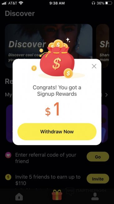 Если он приведет друга, то получит еще $20. За каждые пять приведенных пользователей приложение платит дополнительные $10.