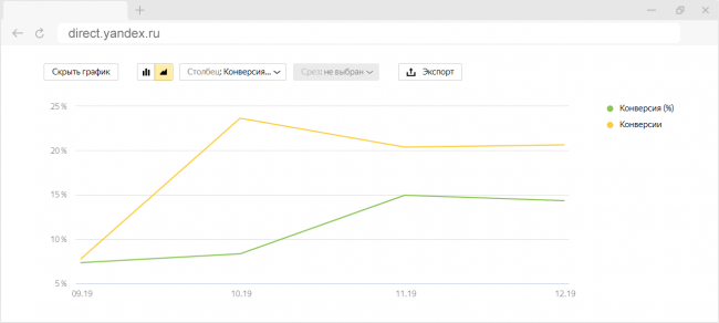 Поэтому мы продолжили эксперименты и перешли на автостратегию «Оптимизация конверсий».