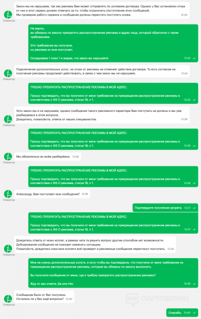 Вместо выполнения Федерального Закона «О Рекламе», статья 18, п. 1, при обращениях к оператору с требованием прекратить распространять рекламу в мой адрес: