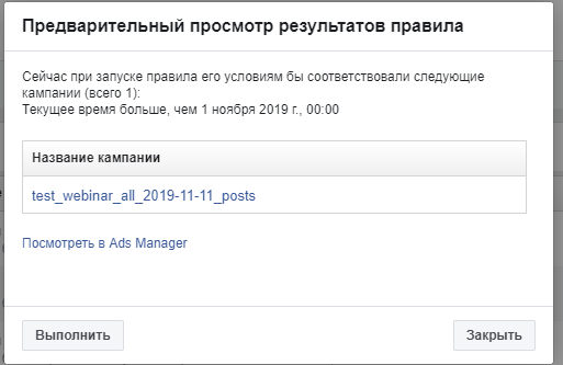Если все настроено корректно, то вы увидите, для каких кампаний будет работать правило и с какими условиями.