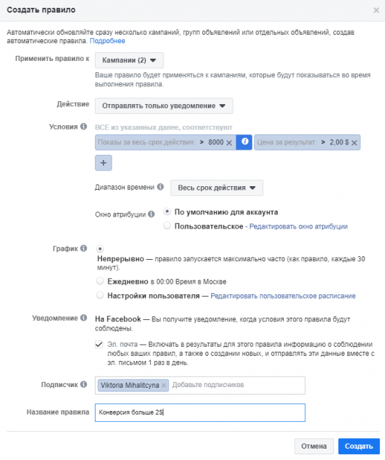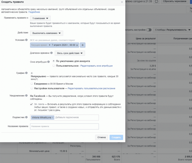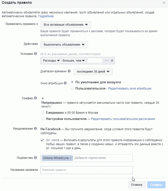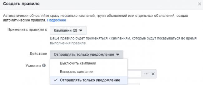 В этой статье я перечислила лишь наиболее частые случаи использования правил в Facebook Ads. В настройках вы можете выбрать любые условия для активации правила, все зависит только от задач, которые вы хотите решить. Например, вы можете: