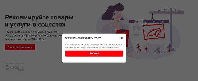 Чтобы начать работать в myTarget, необходимо зарегистрироваться в платформе. Для этого заходим на главную страницу и выбираем «Зарегистрироваться».