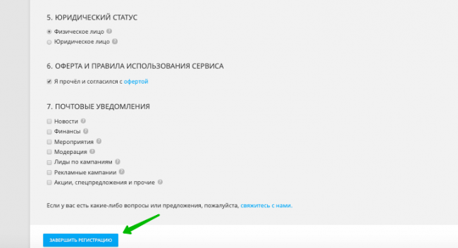 Нажимаем «Завершить регистрацию».