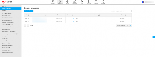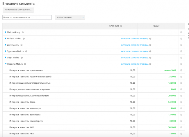 Помимо внешних сегментов, myTarget оперирует данными об аудитории сервисов Mail.ru Group.
