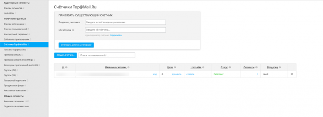 Для создания ретаргетинга нам необходимо зарегистрировать счетчик [email protected]