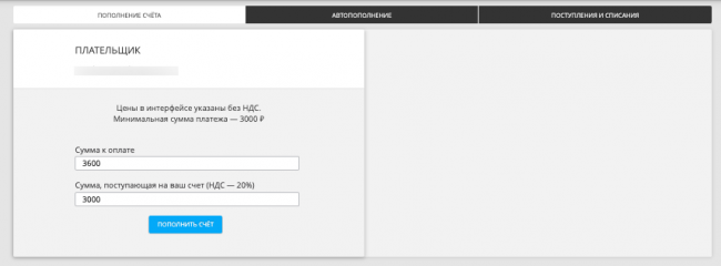 На вкладке «Баланс» можно зачислить средства, включить или выключить автопополнение баланса и посмотреть историю поступлений и списаний.