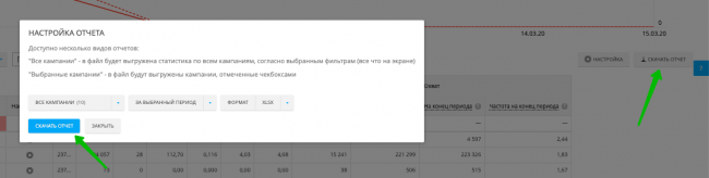 Любой отчет можно скачать в удобном формате с помощью кнопки «Скачать отчет».