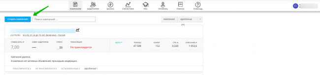Нажимаем «Создать кампанию».
