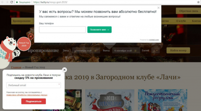На скриншоте ниже сразу несколько всплывающих окон, которые призывают совершить разные действия: оставить номер телефона и подписаться на рассылку. Это, скорее всего, вызовет негатив и отторжение у пользователя.