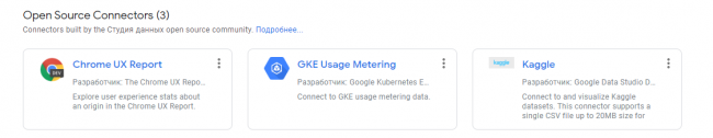 И коннекторы с открытым исходным кодом: Chrome UX Report, GKE Usage Metering и Kaggle.