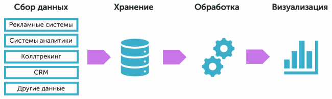 - автоматический сбор данных из популярных рекламных систем, систем аналитики и CRM-систем;