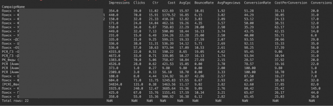 Когда данные будут собраны, их останется почистить и свести. Когда я решал подобную задачу, то обычно соединял в один массив данных статистику по рекламным кампаниям, а к нему через функцию ВПР сводил информацию о целевых действиях и заказах из CRM. Замечу, что ВПР необходимо делать по трем столбцам: «Дата», «Источник трафика» и «ID кампании».