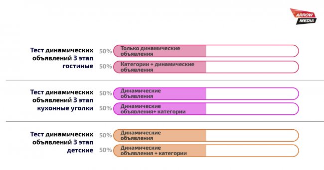 Этап 3: динамические объявления против категорийной кампании и динамических объявлений
