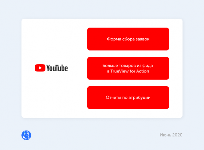 представил несколько новинок для работы с рекламой на YouTube. Так, объявления формата TrueView for Action можно дополнять продуктами из товарного фида, в том числе показывать нужные после клика по кнопке с CTA. К видеообъявлениям на YouTube можно добавлять форму для сбора лидов. А сами кампании — анализировать в отчетах по атрибуции.