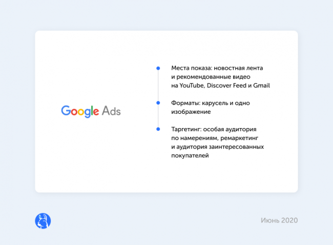 стал доступен всем клиентам Google Ads. Реклама помогает установить контакт с потребителем, когда он просматривает интересный контент в интернете, читает или смотрит то, что соответствует его интересам. Для запуска рекламодателям нужно загрузить элементы объявлений (заголовок, описание, изображения, название компании и логотип, CTA) и настроить аудиторию показа.