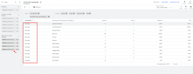 смогут оценить эффективность торговых и поисковых кампаний Google Ads в разрезе товарных категорий.