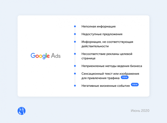 обновит политику относительно искажения фактов и добавит новые правила. Будет запрещено использовать сенсационные тексты и шокирующие изображения, а также апелляцию к негативным жизненным событиям, например, смерти, болезни, арестам, банкротству и другим. Правила вступают в силу в июле 2020 года.