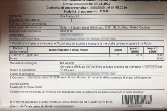 Что касается похудалки, то Keto diet запомнился лютым апсейлом, где весьма навязчиво мне хотели впарить сразу 4-6 пачек, взывая к скидкам и накопительному эффекту. Ну или хотя бы 2. В итоге, накопилось только мое раздражение. Еще я заметила, что некоторые вещи довольно быстро проговариваются, например, формирование цены. Особенно неприятно, что она повышается с 39 евро до 56 евро. Аудио разговора я прикрепила здесь, а скрипт — здесь. Доставка заняла 3 дня, что даже быстрее обещанного, а заплатить можно было карточкой или наличными.