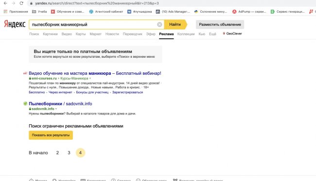 Если мы введем запрос «маникюрный пылесборник», то конкуренция снизится до четырех страниц.