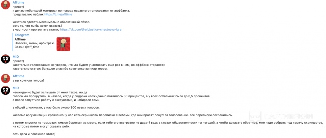 В подкрепление к сказанному он также выслал скрины нескольких переписок с партнерами.