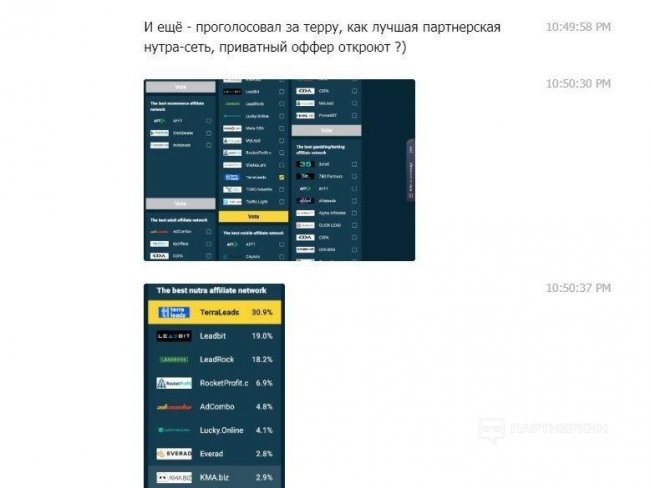 Что мы думаем по этому поводу? Вероятно, представитель Терры раза в 2 уменьшил количество реальных накруток, но не более того. Все же партнерка топовая, а голосовать они просили не за спасибо.