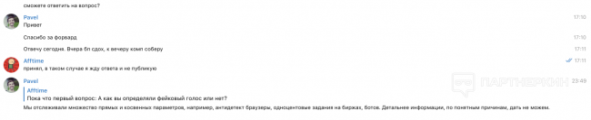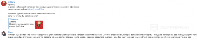 А еще он выложил эти пруфы прямо в чат канала Affbank и попросил пояснить за биржи. Не берусь судить профессиональность (читай: эмоциональность) ответа Павла, но считаю, что лучшее в этой дискуссии — это ответ Ульяны, бывшей главы Affbank. Прочитать всю переписку и узнать аргументы сторон можно здесь.