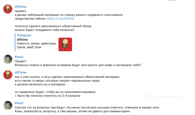 Также мы напрягли одного из наших сотрудников, который год назад работал в ПП. Он поднял архивы и поделился весьма любопытным диалогом.