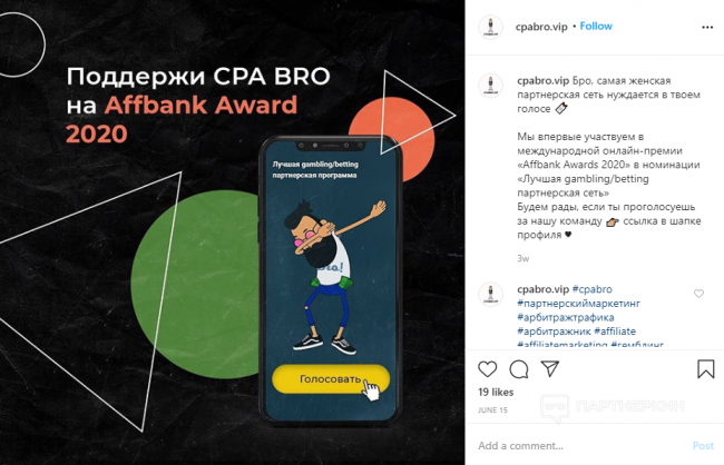 Вспоминая слова Кравченко про охваты, мы решили лично оценить то, насколько активно номинанты Affbank Awards призывали голосовать в своих соцсетях. Сфокусироваться решили на победителях тех категорий, в которых мы незадолго до этого тестили накрутку голосов.