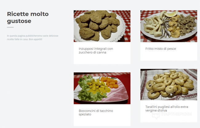 Как вы уже заметили, на главной отображены 4 страницы, каждая с отдельным рецептом. Можно и больше, к примеру 6 или 8, но простестировал на 4-х, все работает. Это сделано для отвода глаз, если можер все таки чекнет ссылку. А там красивый лендос, чистая верстка, в целом все ровно.