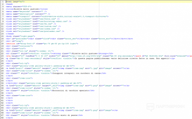 Исходный код главной страницы выглядит таким образом: