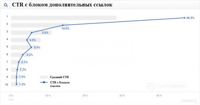 Сайт на первой позиции с дополнительным блоком ссылок может увеличить CTR до 46,9%: