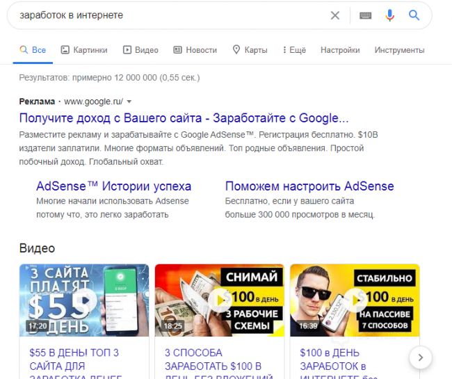 CTR падает ниже среднего по всем позициям, когда верхняя часть поисковой выдачи заполнена объявлениями Google: