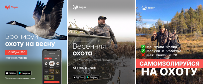 Каждый охотник желает знать. Нет, не где сидит фазан, а где найти профессионального гида. Традиционно с этим вопросом охотники отправляются на форумы, однако это сопряжено с рисками попасть в руки мошенников. Или собирают рекомендации — что сильно сокращает выбор егерей и мест для охоты. Приложение Yager решает эти проблемы: оно объединяет любителей охоты и профессиональных егерей, готовых предложить сопровождение на охоте. Сегодня это единственное в своем роде приложение на рынке охоты. С одной стороны, отсутствие конкурентов позволяет громче заявить о себе. А с другой — сложившаяся практика поиска гида для охоты затрудняет продвижение. Владельцы сервиса обратились в рекламное агентство MediaNation с задачей найти пользователей. Работа над продвижением приложения оказалось интересной: по сути, требовалось рассказать существующему рынку о современном способе коммуникаций двух заинтересованных друг в друге сторон. PR-сопровождение сервиса взял на себя заказчик, а нашей задачей стало продвижение в performance-каналах. Что предстояло сделать Перед нами стояло четыре задачи: Запустить современный сервис в достаточно новой для digital тематике. Привлечь в приложение егерей, чтобы расширить ассортимент предложений сервиса. Привлечь платежеспособных охотников. Скорректировать рейтинг приложения в магазине. Сложности нас ждали в нескольких моментах. Во-первых, необходимо было изучать незнакомый рынок и опираться на инсайты клиента. Во-вторых, довольно трудно выделить в аудитории гидов и целенаправленно привлекать именно таких пользователей. Кроме того, не была завершена настройка аналитической системы. В ней отображались не все события, что осложняло оценку эффективности рекламных каналов и конкретных кампаний. Начало работ Клиент пришел к нам, оставшись недовольным работой предыдущего подрядчика. Первым делом мы посоветовали подключить бесплатную систему мобильной аналитики AppMetrica на замену текущей системе AppsFlyer. Весомым аргументом в пользу этой системы стало и то, что клиент планировал рассылать пуш-нотификации пользователям приложения. Для этого часто приходится пользоваться платными сервисами, а в AppMetrica эта опция бесплатная. Для продвижения мы выбрали запуск специальных кампаний для приложений в Google Ads, Instagram и Яндекс.Директе. Период работ — с января по апрель 2020 года. Поиск аудитории Вообще, охота — сложная тематика с довольно четкой и узкой целевой аудиторией. Однако с помощью грамотно настроенных таргетингов и правильно выбранных площадок эту аудиторию найти все же возможно. Для поиска потенциальных клиентов и пользователей приложения в Instagram были выбраны таргетинги по интересу «Охота» и смежным темам. При этом мы исключали интересы, связанные с правами животных, Greenpeace и так далее. Чтобы привлечь платежеспособную аудиторию, интересы к охоте мы совмещали с таргетингом на обеспеченных пользователей — тех, кто часто путешествует, интересуется дорогой недвижимостью и автомобилями. Помимо этого, в Instagram был настроен look-alike на аудиторию пользователей, которые уже установили приложение. Такую настройку возможно сделать только при использовании в приложении Facebook SDK. В Google Ads все было немного проще. Мы использовали кампании для приложений, которые самостоятельно ищут целевую аудиторию. Banner О креативах Большим плюсом в работе 