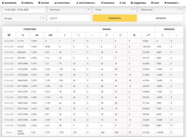 По Казахстану паразитов я здорово отливал с подходом на папиломы, а тематика глистов всегда конвертила чуть хуже. Поэтому над связкой долго думать не стал и просто попросил менеджера адаптировать мою КЗ проклу с папиломами под УЗБ. Проклу и ленд себе не выкачиваю, так что в стате видно клики CR и тд. Трекер и клоака - Зевс через taplink с js. Сейчас taplink с js у меня банится, но еще в июне тема была рабочая и трафа терялось минимум.