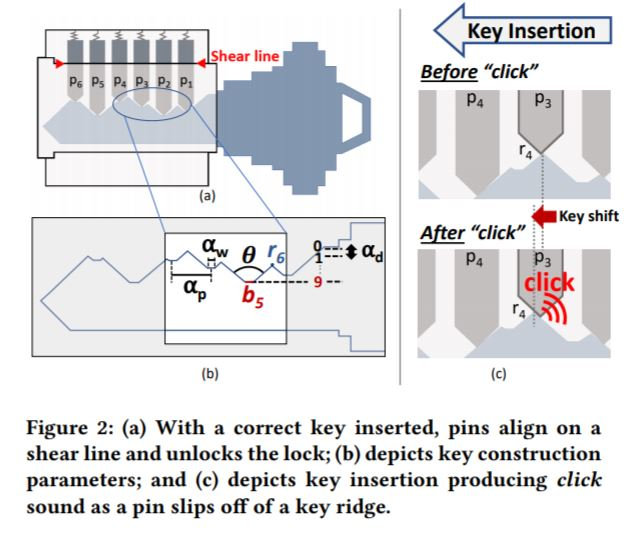 По сути, предложенная исследователями атака предлагает использовать микрофон обычного смартфона для захвата звука вставки и извлечения ключа из замка. Этот звук позволяет сделать выводы о форме ключа и его бородке, а затем создать копию. Специальный софт, созданный экспертами, определяет время между щелчками, которые возникают при контакте ключа со штифтами в замке, и, основываясь на этих данных, воссоздает сам ключ.