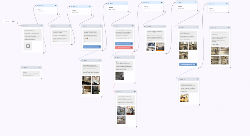 Человек получает наши сообщения 10 дней подряд. Обычно этого времени хватает, чтобы определиться, где заказать кухню. После последнего письма мы спрашиваем пользователя, купил он кухню или еще думает? Если купил — прощаемся с ним, если еще думает — приглашаем в другую воронку, в которой даем рекомендации по выбору и обустройству кухни. Например, рассказываем, как правильно расположить технику на маленькой рабочей поверхности с примерами наших кухонь, как выбрать цвет кухни тоже с нашими примерами и прочее.