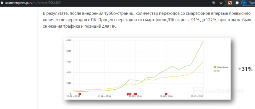 Несмотря на все недостатки, небольшое преимущество Яндекс все же дает ресурсам, которые сделали ускоренную версию сайта. Стоит ожидать увеличение трафика с мобильных устройств. Оно и понятно, по-другому вебмастеров вряд ли получилось бы мотивировать. Вот несколько экспериментов с форума «Searchengines»:
