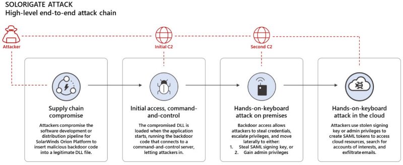 Аналитики Microsoft продолжают изучать атаку на цепочку поставок, которой в этом году подверглась компания SolarWinds, а затем и ее клиенты. Напомню, что неизвестные злоумышленники атаковали компанию SolarWinds и заразили ее платформу Orion малварью. Среди пострадавших оказались такие гиганты, как Microsoft, Cisco, FireEye, а также множество правительственных агентств США, включая Госдеп и Национальное управление по ядерной безопасности. Все, что известно об этой масштабной компрометации, которую многие называют взломом года, мы собрали в одном материале.
