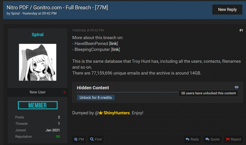✔Данные 77 млн пользователей Nitro PDF опубликованы хакерами - «Новости»