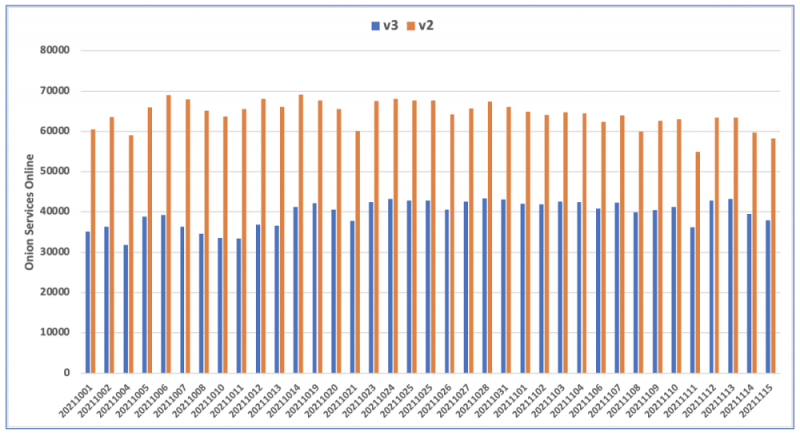 DarkOwl пишет, что в июле 2021 года произошел всплеск создания новых доменов v3, который совпал предупреждениями Tor Project, которые стали отображаться перед доступом к доменам v2. В результате, только за последние две недели июля, было зарегистрировано более 2 900 доменов v3.