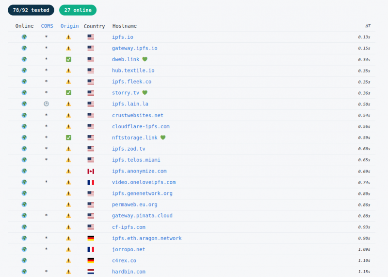Некоторые общедоступные шлюзы IPFS