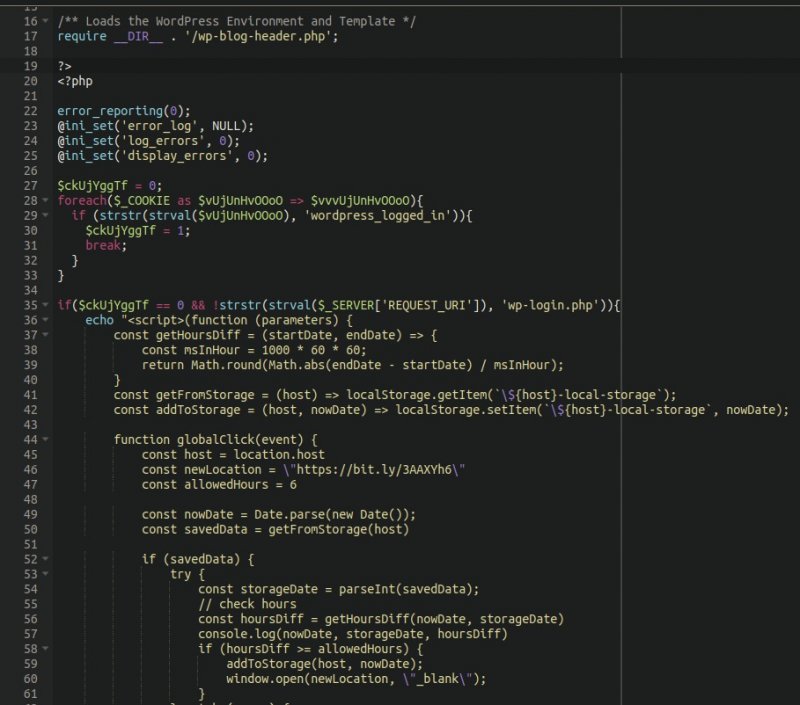 Исследователи рассказывают, что на взломанных сайтах хакеры модифицируют PHP-файлы WordPress, включая wp-singup.php, wp-cron.php, wp-settings.php, wp-mail.php и wp-blog-header.php, внедряя в них перенаправления на поддельные Q&A-форумы. Также в некоторых случаях злоумышленники размещают на сайтах жертв собственные файлы PHP, используя для этого случайные или псевдолегитимные имена, вроде wp-logln.php.