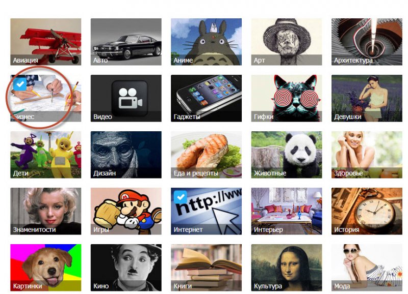 Очень хорошая функция – это интересы. С лева вы найдете одну кнопочку, при ее нажатии вам откроется меню, где вы можете найти ссылку на страницу – Интересы. Если у вас свой проект в интернете, то можно черпать новую информацию из выбранных сайтов. Вам покажут все страницы по вашим выбранным интересам. Для себя я выбрала бизнес, интернет, реклама и прочее.