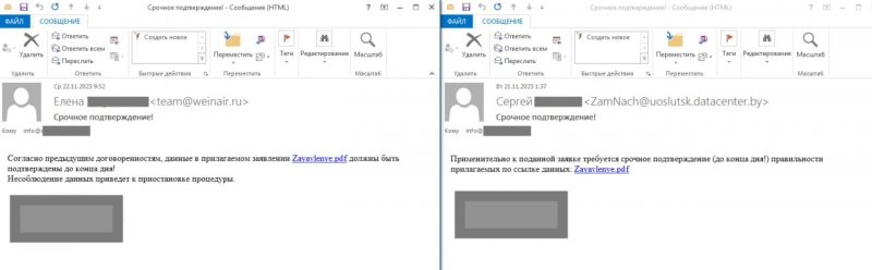 В обоих случаях в подписи стоял логотип российского научно-исследовательского института, специализирующегося на проектировании объектов ядерного оружейного комплекса, а в качестве отправителя была указана электронная почта некой логистической компании из Калининграда.