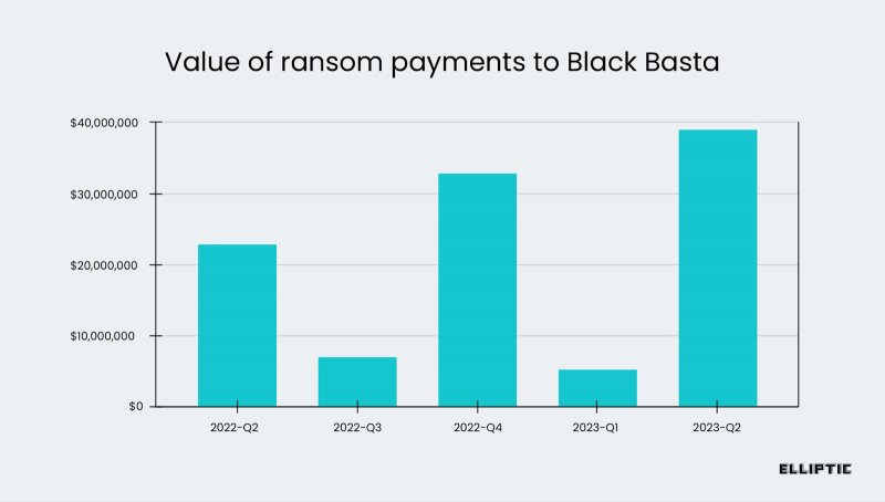 По данным исследователей из компаний Corvus Insurance и Elliptic, с апреля 2022 года русскоязычная хак-группа Black Basta получила не менее 100 млн долларов выкупа, взломав более 90 жертв. При этом самый крупный платеж составил 9 млн долларов, а средний размер выкупа равен 1,2 млн долларов.