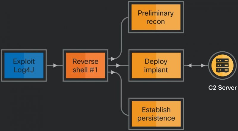 По информации Cisco Talos, проблема Log4Shell используется для доставки троянов удаленного доступа NineRAT и DLRAT, а также загрузчика вредоносного ПО BottomLoader. Отмечается, что язык программирования D (DLang) редко встречается в киберпреступных операциях, и Lazarus, вероятно, выбрали его для разработки новой малвари умышленно, стараясь избежать обнаружения.