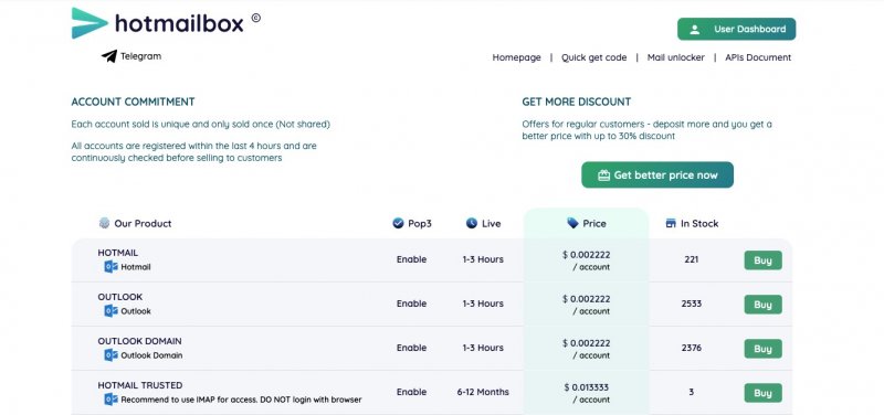 - hotmailbox.me, через который продавались учетные записи Microsoft Outlook;