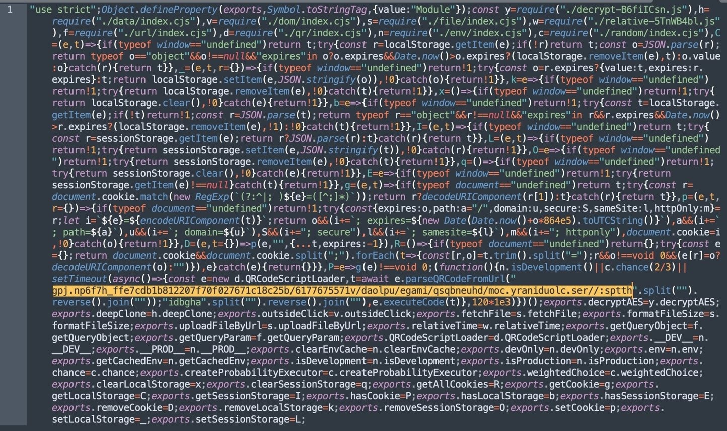 В итоге при обращении строки получается URL-адрес. По словам специалистов, хранение URL в обратном порядке — техника маскировки, которая используется для обхода инструментов статического анализа, ищущих в коде URL-адреса (начинающиеся с http(s)://).